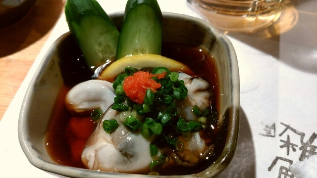 かきポン酢:かきとポン酢が最高。かきは小ぶりでサロマのもの。