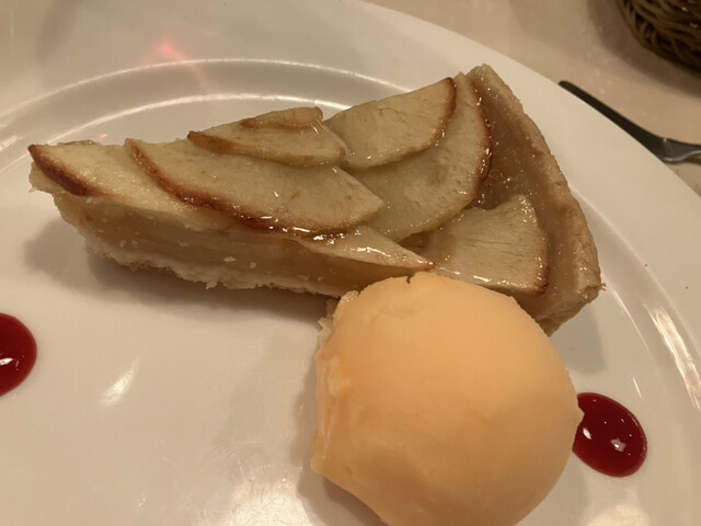 デザートに高貴なプリンとりんごのタルト、コーヒーを注文。りんごのタルトは薄くタルト生地も物足りなかったが、高貴なプリンはバニラの効いたカスタードがうんと濃くてボリュームもあり、大満足。