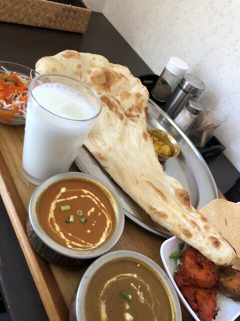 思い切ってカレーが2種類食べられる「エベレストBセット」を注文、カレーは弾力のある生後2年以上の羊肉を使った「マトン」とほうれん草を使った緑色のカレー「パラク」(食)。他にもタンドリーチキンにカバブなど日本人好みの味付けではありますが本格的な料理を楽しめました、ごちそうさまでしたっ(満)!