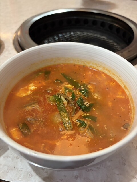 しめはユッケジャンスープ。