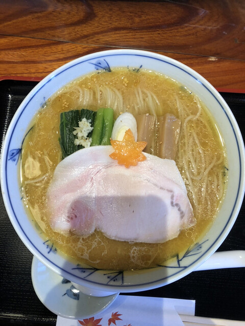 相変わらずの美しいビジュアル。センターには、もみじ型の昆布が鎮座。これぞ、もみじの中華そば。