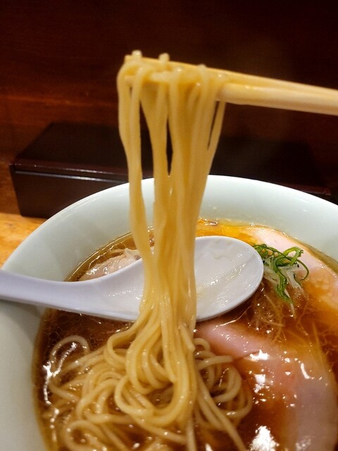 中細ストレート麺。このタイプのスープにはこれ一択。スープのからみもよく美味しい。