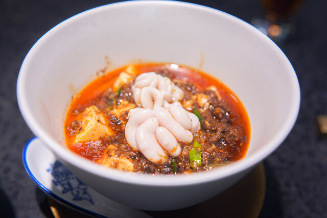 白子を合わせた麻婆豆腐。