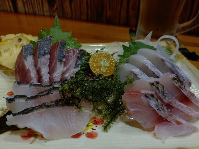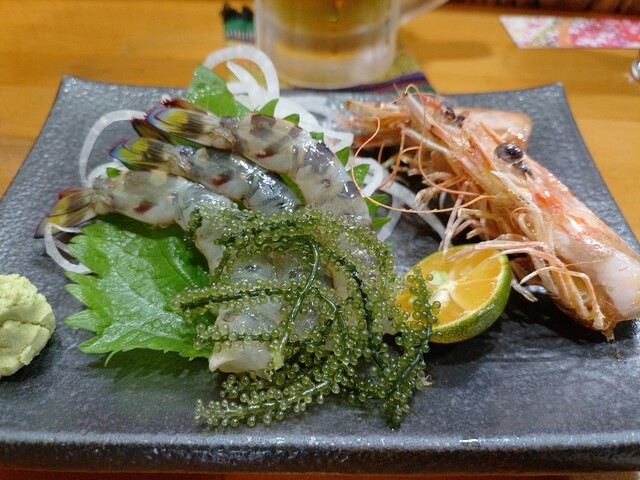 川平地区はいわゆるコンビニは無く、商店も平日は閉店だったり気まぐれで閉店の店が多いので、南ぬ島石垣空港の最近できたコンビニで買ったオリオンビールが底を尽き、ダイビングでカラカラになった体を潤すべく2日続けての訪問、なので普段とは違うメニューを。川平地区は夜空いている店が少ないので素泊まりだと本当に難儀します。毎度豪華なお通し、那覇空港でなかなか買えない大東寿司、クルマエビの塩焼きなどを頂きながら、カラカラに乾いた体をオリオンビールで潤せます。