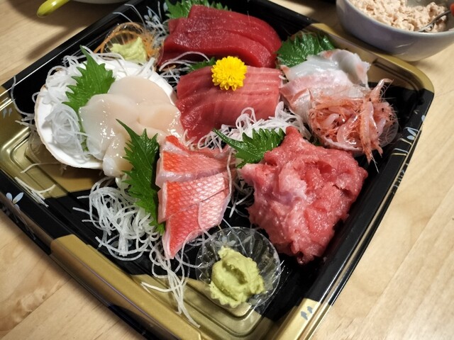 予定より早い時間、13時30分頃にお店に伺う。お刺身は準備していてくれて希望通り生しらすも入れてくれていた。お刺身の内容も丁寧に説明してくれて保冷材も準備して頂き電車で持ち帰り。