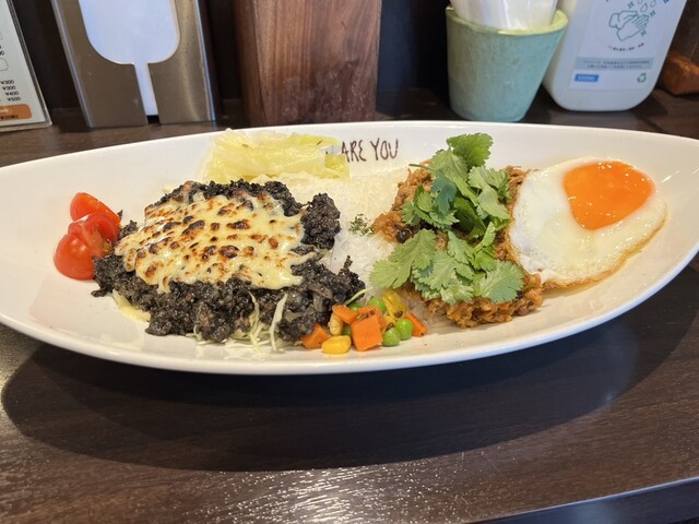 「チキチキキーマ」と「パキスタン家庭風チキンカレー」のハーフ&ハーフを注文。