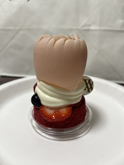 味はフランボワーズの酸味とガナッシュの甘さが絶妙な割合で同居している。酸味の効いたケーキが好きな人に是非食べて欲しい。