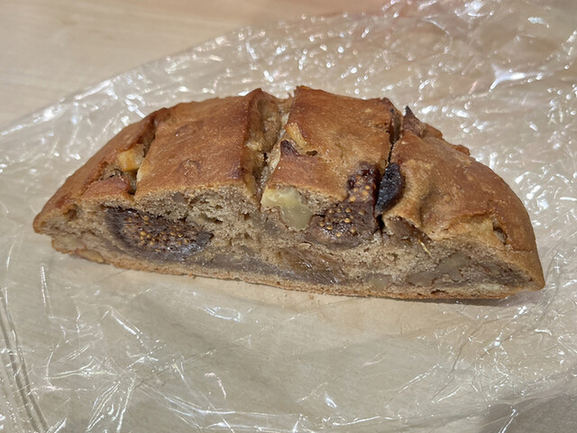 しっとりした食感で、適度なキャラメル風味が美味しい。しっかり入ったクルミや、練り込まれたイチジクのプチプチ感も良い。