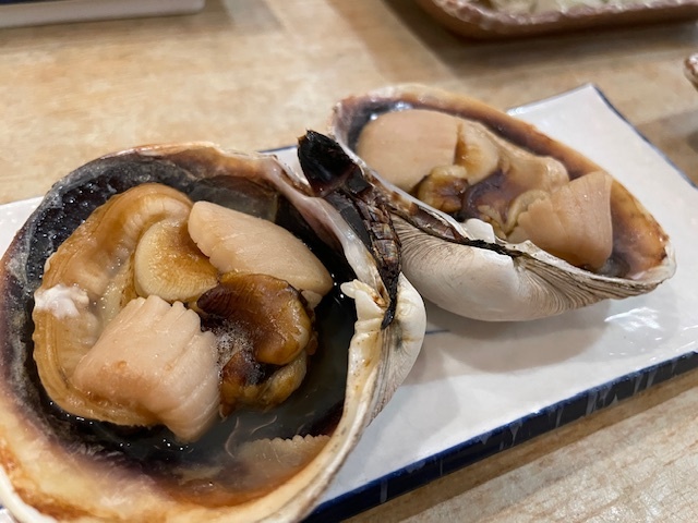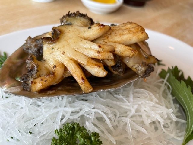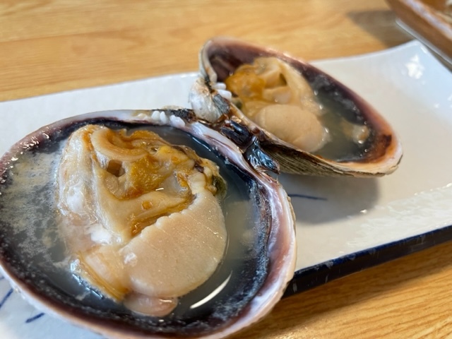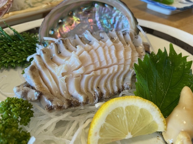 他に行くと、あわびなんかは刺身が無いこと多いです。