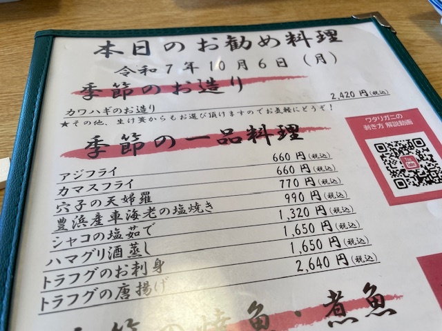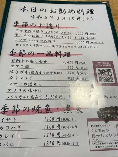 少し待ちましたメニュー見たり生簀見たりメニューは以前の構成になってた