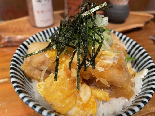 鶏天を楽しんだ後は出汁を包み込んだ甘辛味の玉子が乗った丼を掻き込む。