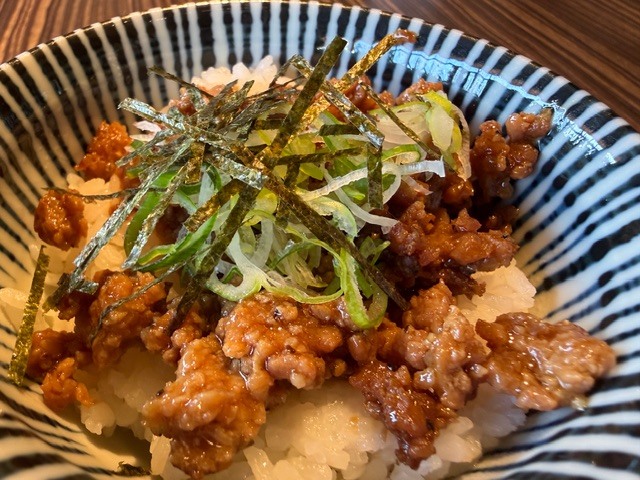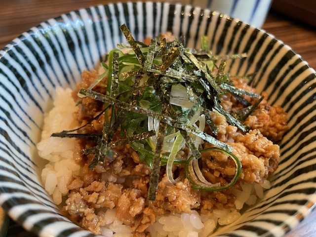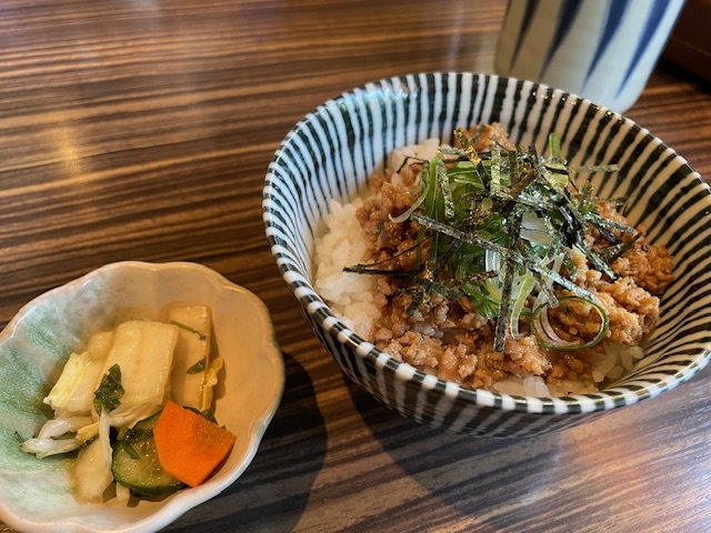 丼は最近お気に入りの地鶏そぼろ丼を頂いた。