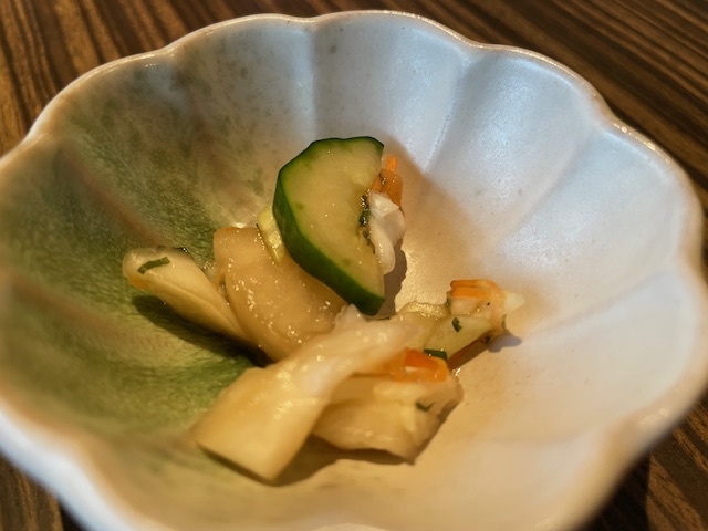どの種類のキノコかは判断しずらいが、ぬるん、シャくっ、ほっくりと食感の三重奏を奏でる。