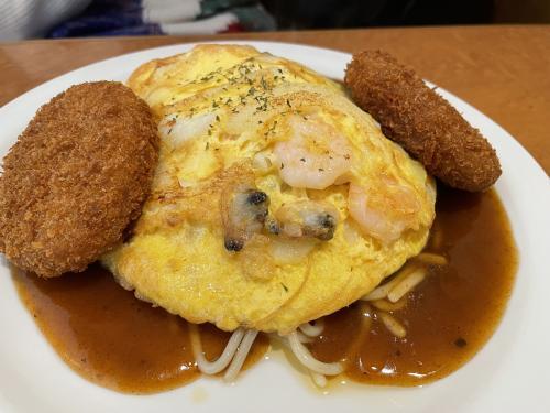 俺の決断は、オムカレースパにライスとコロッケで決めました。