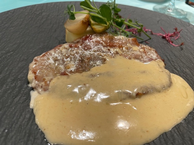 メインは仔牛ロースのソテーサルティンボッカ チーズソース。