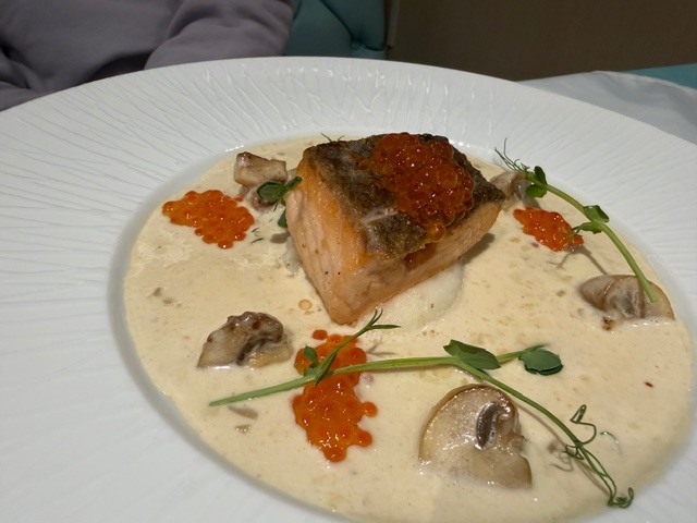 王妃のティアラは、じゃがいもとマスカルポーネ包み エビとマッシュルームクリームソース。