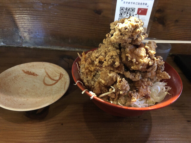 店名の通り目の前にバス停があり駅からのアクセスもよく味、ボリューム共に満足できる唐揚げ専門店