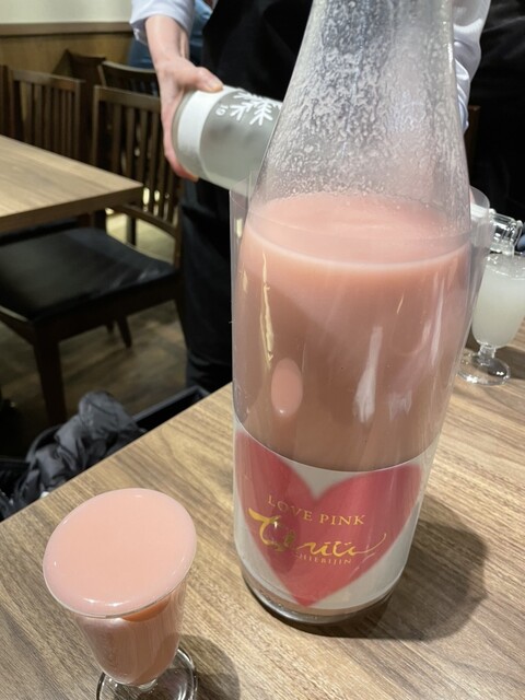 ピンク色の濁り酒とは書いてましたが、登場した瞬間ビビリしまた。ほんとに真ピンクでしたので。マッコリみたいに濃厚で美味しかったです。