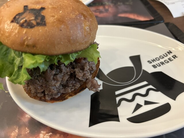 肉を食べるハンバーガー