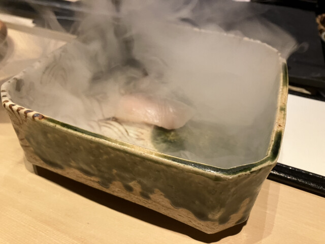 燻製されたトロサワラは、目の前で蓋をオープンして視覚的にも嗅覚的にも良いです。
