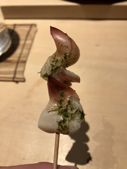 握りは、それぞれ『仕事』がしてあるネタに小ぶりのシャリがマッチして、口の中でシャリがほどけます。毎回驚きの連続でした!