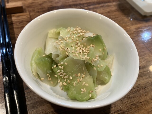 まず、フレッシュザーサイの浅漬けを摘みながらスプリングバレー生ビールで乾杯。味わい深いビールとサッパリしたザーサイが、スタートを彩ります。