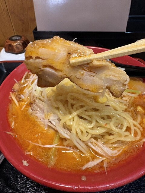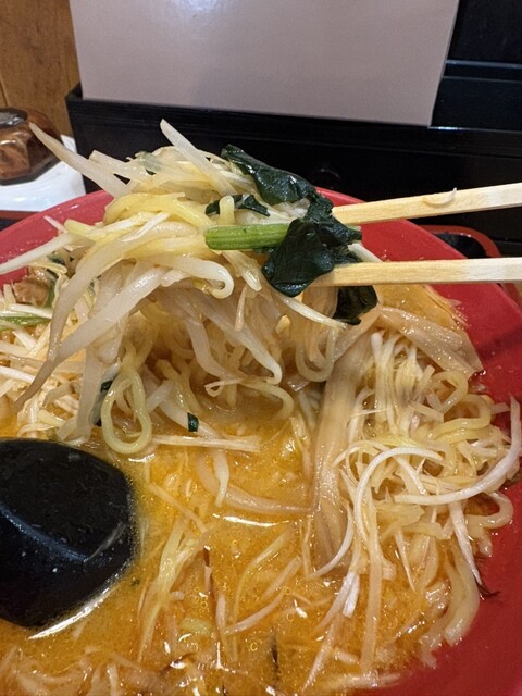 いつものように、スープから頂きます、優しい口当たりのちょっと甘めのとろみがある味噌味、宮城の「みそ壱」のスープを少し甘くした感じで美味しいですね。