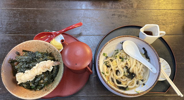 相方→悩まず前回も食べていた《えび天だしめし{うめ味}温うどん定食¥720》を注文!