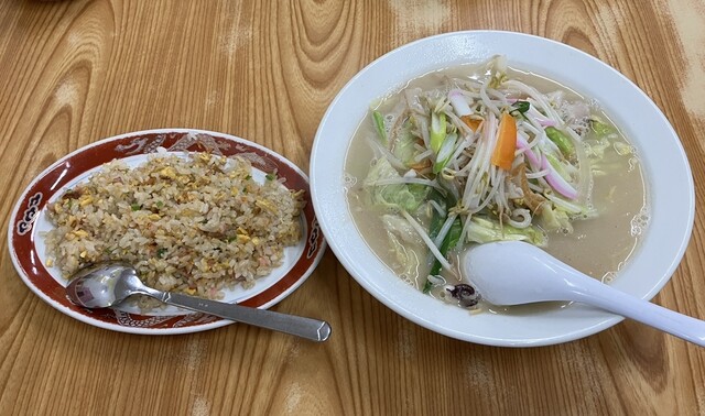 焼きめし{普通}・ちゃんぽん{大盛}のセットです♪ ちぢれ細麺なのでペロって完食(^.^)