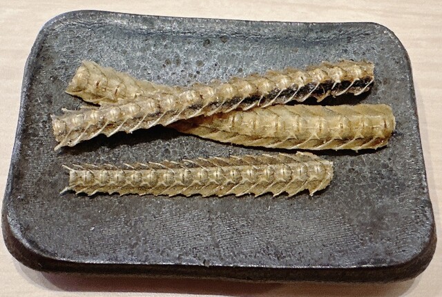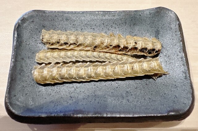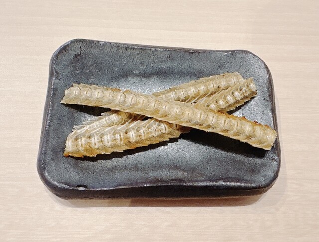 食前に出てくる骨せんべいは、塩味が効いており食欲をかき立てる。