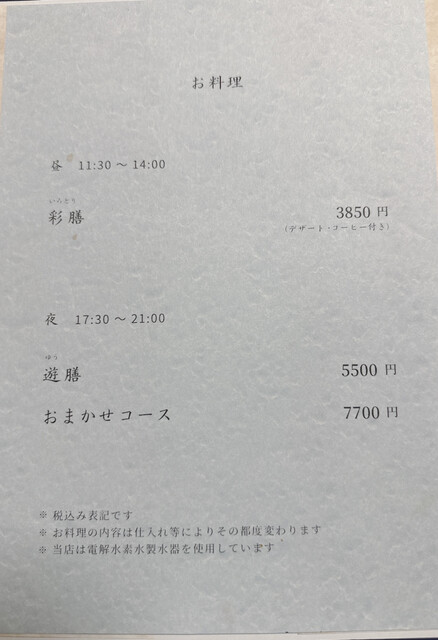 本日の夕食は「食彩 遊真」さんでコース料理をいただきました。