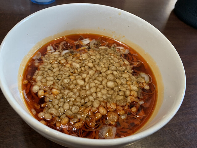 ざる中華つけ汁 ピリ辛です、クセになりそうな味です。美味しくいただきました♪