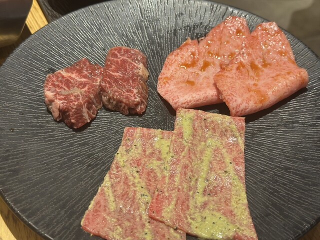 まずはそのまま→とろけました♪ユッケとネギ塩がマッチしてお酒がすすみます