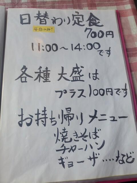 日替り定食(豚の生姜焼)、700円、大盛、100円、10分