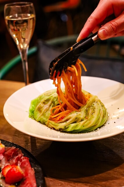 運ばれてきてびっくり!キャベツにパスタが包まれているというサプライズ感と演出が素敵♪