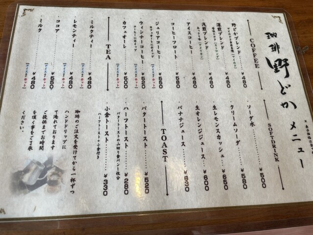 モーニング〜11:00でドリンク代のみ