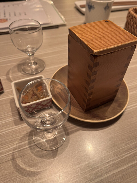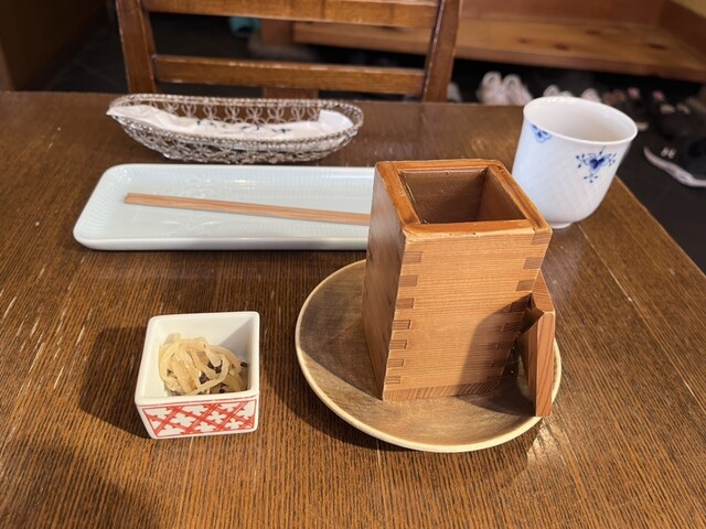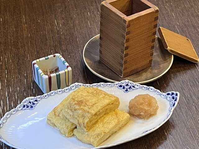 席に着くと同時に、枡酒とだし巻き卵注文します。
