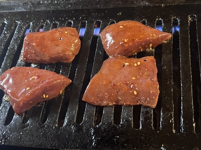 よく焼きますが、コレも美味しいですよ。ホルモンは3種類の盛り合わせで、その後に出たレバーは角がピンってなってましたよ。