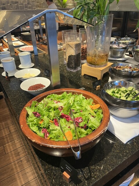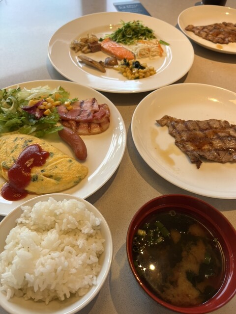 朝6時からオープンしています。この日もご飯に味噌汁を中心にオープンキッチンのステーキやオムレツなどをいただき大満足ですね。普段は朝からそんなに食べないんですけどついついお腹いっぱい食べてしまいます。(^^)