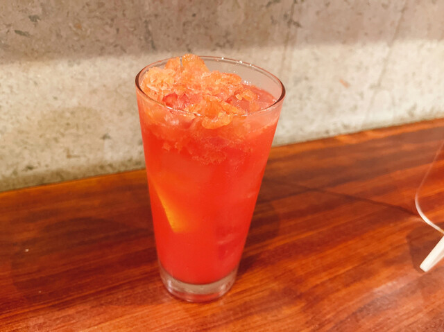 勿論大好きな塩トマトサワーも追加で。トマトがシャリシャリに凍っていてレモンを絞って最高に美味しいサワー。