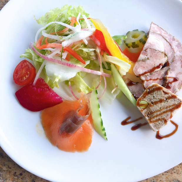 Appetizerは、去年とほぼ変わらず"自家製ハムとタスマニア産サーモンのマリネ"で彩りがとても綺麗で大好きなスモークサーモン。