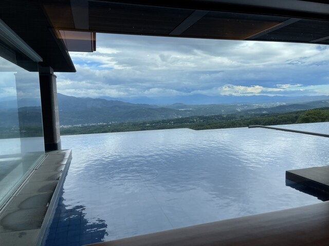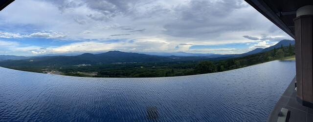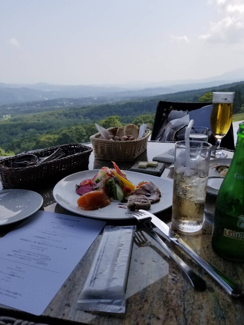 スキー場に有るホテルとは思えない程、格式を感じる。館内に入りレストランに向かう途中、あまりの絶景に足が止まる。眼下に広がる雄大な景色。冬の景色も素晴らしいのだろうと想像が出来る。