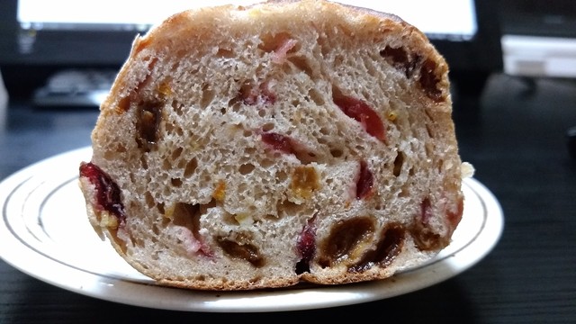 また、中に混ぜ込まれているドライフルーツ等の素材も良質で生地の力強さに負けていない。