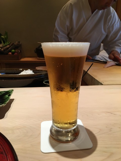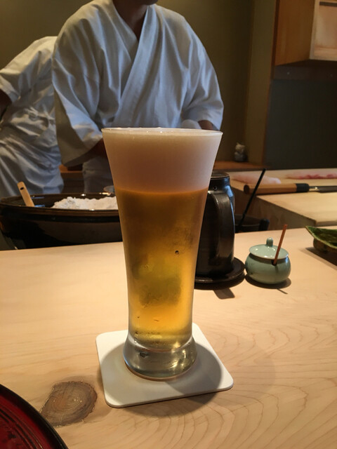 静岡の「てんぷら成生」に行かないかと食通の友人に誘われたのが数か月前!正直、揚げ物系は苦手なのでそんなに気乗りはしておりませんでした。でも色々調べると地元静岡の野菜と駿河湾の魚介をふんだんに使った天ぷらは絶品と絶賛の嵐じゃないですか!6月へ向けだんだんテンションが上がり当日を迎えます。時間もありましたのでゆっくり在来線で静岡を目指します。まずは生ビールで乾杯!「てんぷら成生」さんどうなんでしょう!わくわくします。
