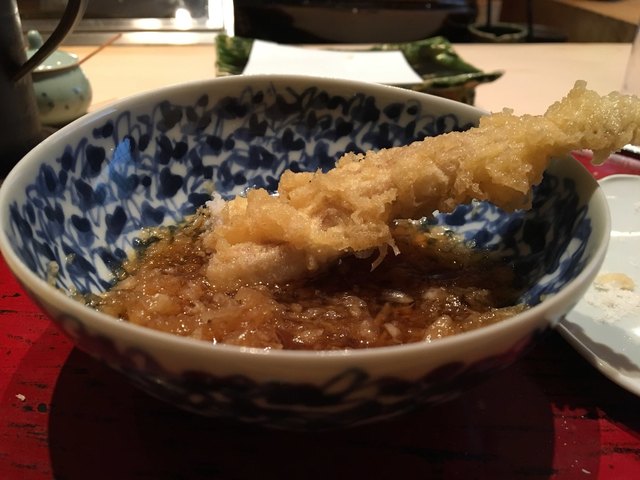 ⚫︎穴子・・・たっぷりの大根を天つゆに浸しがぶりといきます(๑˃̵ᴗ˂̵)サク!ふわ!至福のひと時です。