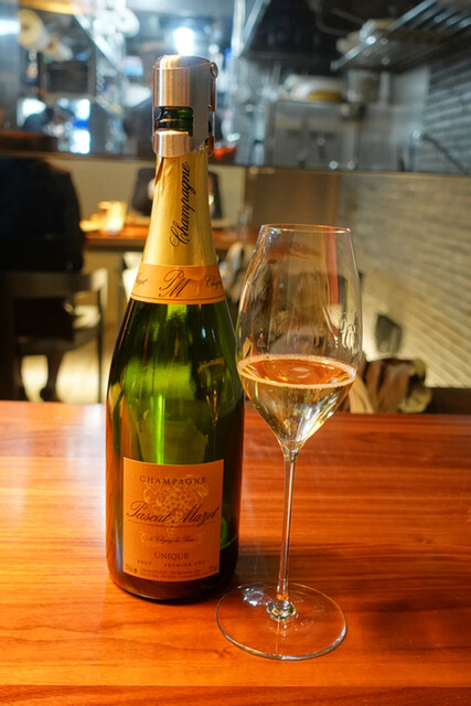 本日のテーマは「食材の命を断つ瞬間から料理が始まる」油分保有率と水分保有率のバランス、味覚の対比を意識した全10皿(^。^)先ずは〝パスカル・マゼ プルミエ・クリュ〟で乾杯!