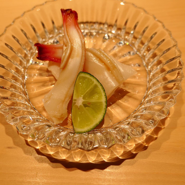 2.スミイカとゲソ・・・酢橘を振ってさわやかに仕上げます。サクッと歯が入る身質はフレッシュでこれまた嫌らしい程に甘い!酢飯とのバランスもバッチリです。ゲソもシンプルに旨い。