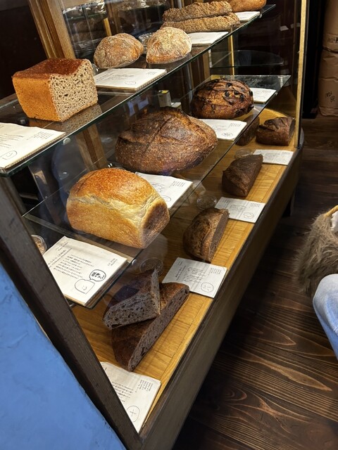 平日昼間、お客様が中でワイン飲みながらパンを食べてる