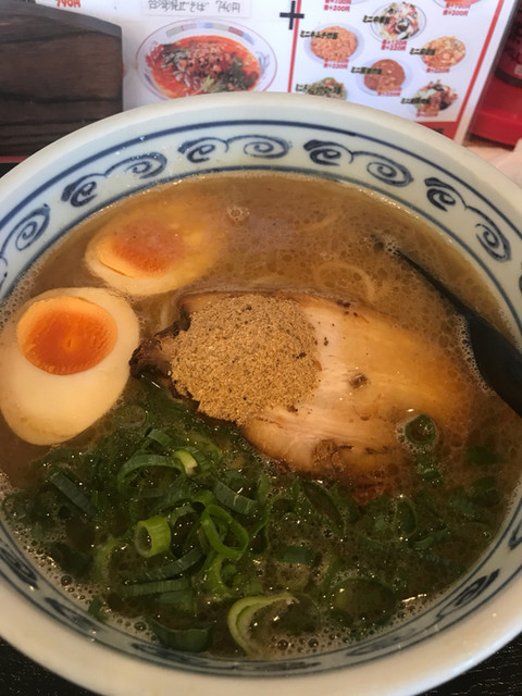 ラーメンは、魚粉がたくさん乗ってる、豚骨もこってりしてるようで、あっさりと魚介の風味も良く麺が進みます!
