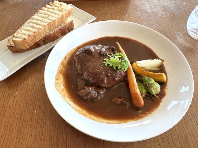 ハンバーグランチ、デミグラスシチュー、パン、紅茶 2000